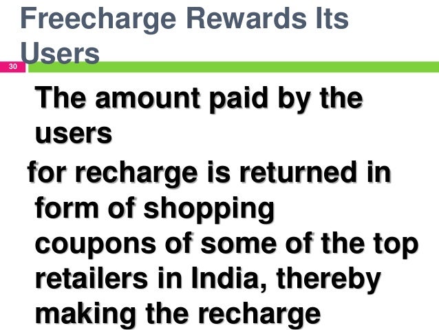 Freecharge Offers & Coupons : 100 Cashback on Mobile Recharge, DTH ... Freecharge Offers & Coupons : 100 Cashback on Mobile Recharge, DTH, Bill Pay Offers Check freecharge Cashback offers and coupons on Prepaid, DTH, DataCard, Metro Recharges, Electricity, Gas and Broadband Bill Payments ,Wallet and Merchant Offers