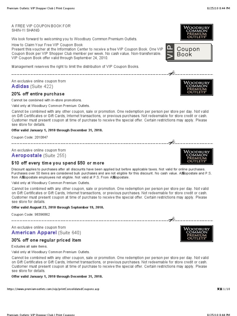 Coupon book woodbury commons