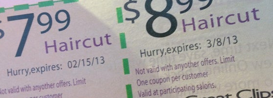 Great Clips Coupons: Promo Codes, 2022 - RetailMeNot.com In-Store Coupon $5 Off Great Haircut Added by Stde Show Coupon See Details $2 OFF Sale $2 Off Your Next Haircut When You Enter The Great Harley-Davidson Sweepstakes Get Deal See Details $2 OFF In-Store Sale Enter Sweepstakes To Receive $2 Off Your Next Haircut See Sale Details See Details 25% OFF In-Store Sale 25% Off Gels For The Month of July