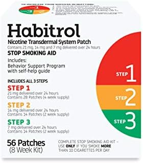 Habitrol Nicotine Transdermal System Patch | Stop Smoking Aid | Steps 1, 2, and 3 (21, 14, and 7 mg) | 56 Patches (8 Week Kit)